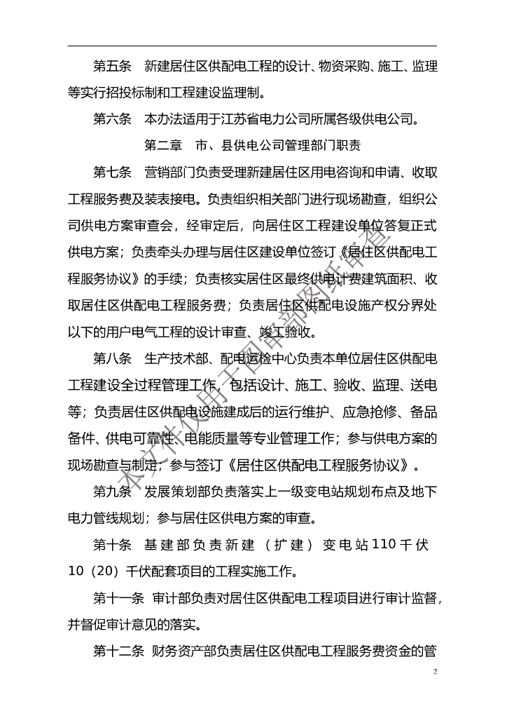 江苏新建居住区供配电工程服务管理办法.doc