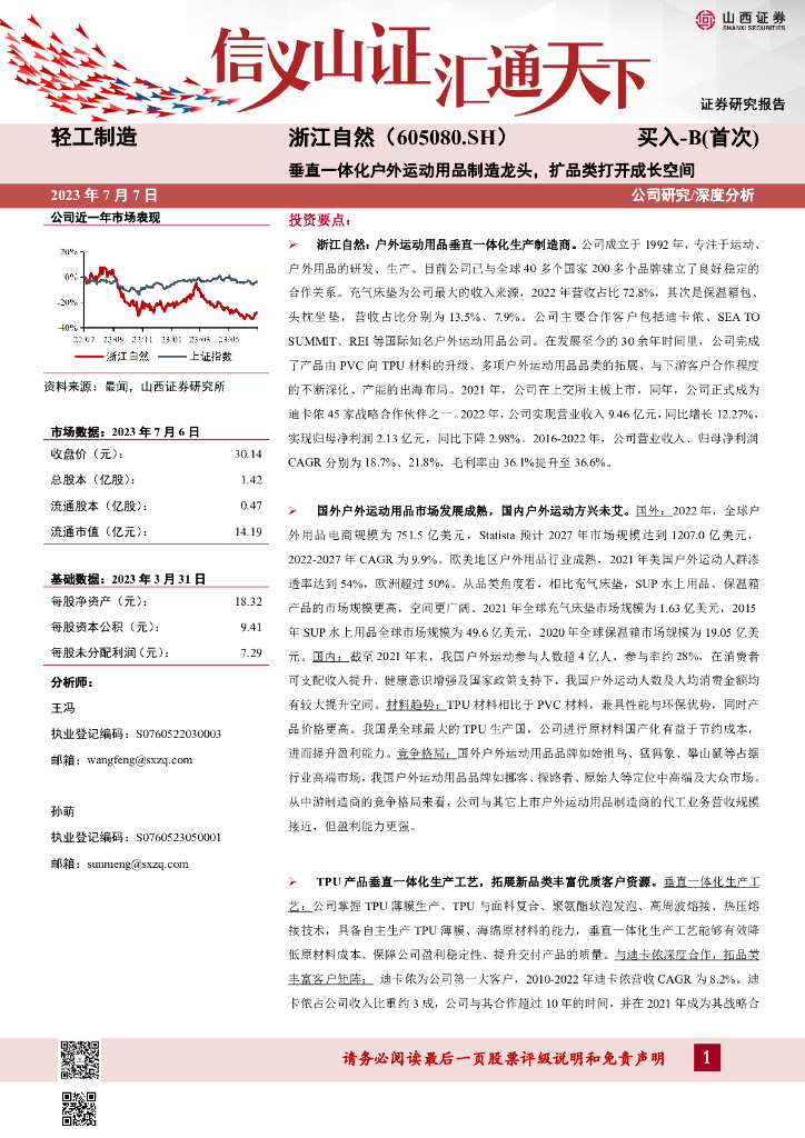 山西证券:浙江自然(605080)-垂直一体化户外运动用品制造龙头,扩品类打开成长空间.pdf