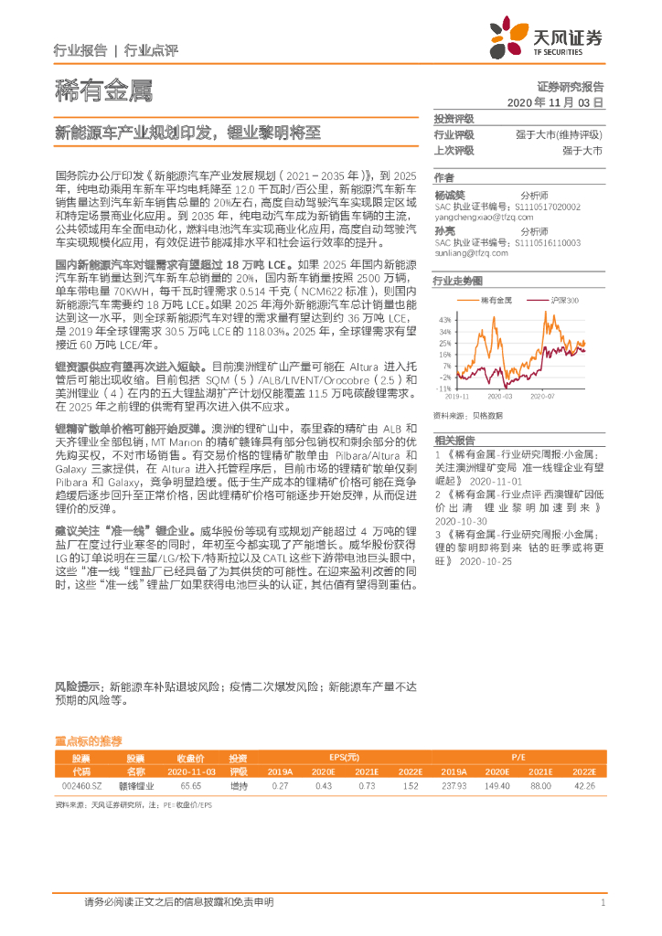 天风证券:稀有金属:新能源车产业规划印发,锂业黎明将至.pdf