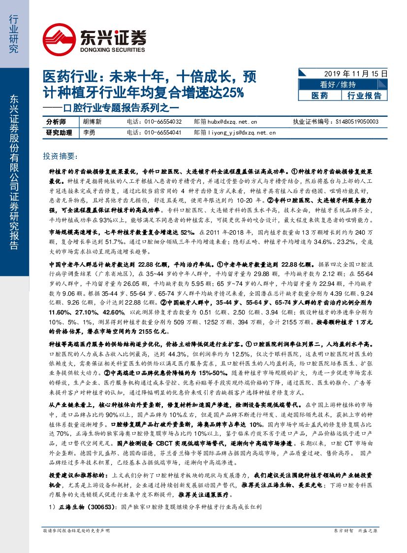 东兴证券:口腔行业专题报告系列之一:医药行业:未来十年,十倍成长,预计种植牙行业年均复合增速达25%.pdf