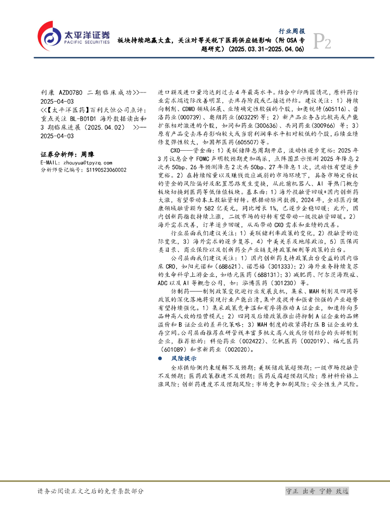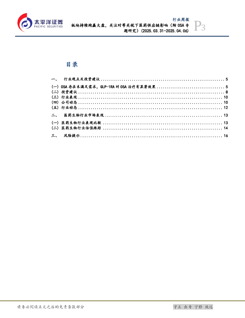 太平洋证券:医药行业周报:板块持续跑赢大盘,关注对等关税下医药供应链影响(附OSA专题研究).pdf