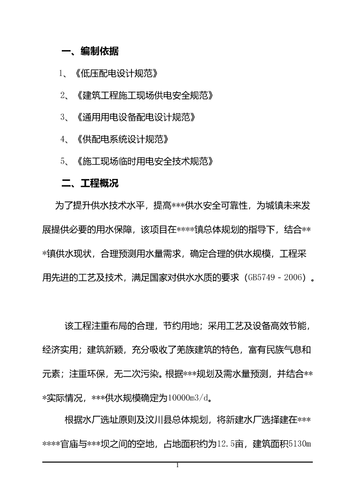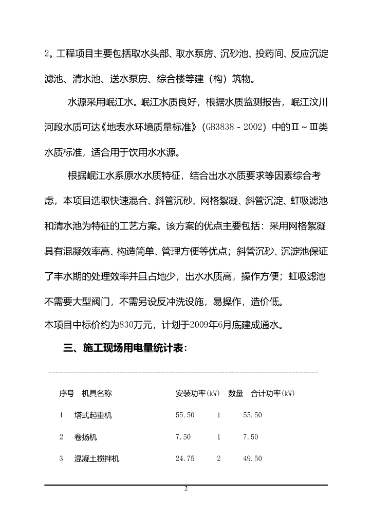 汶川县某新建水厂临时用电施工方案.doc
