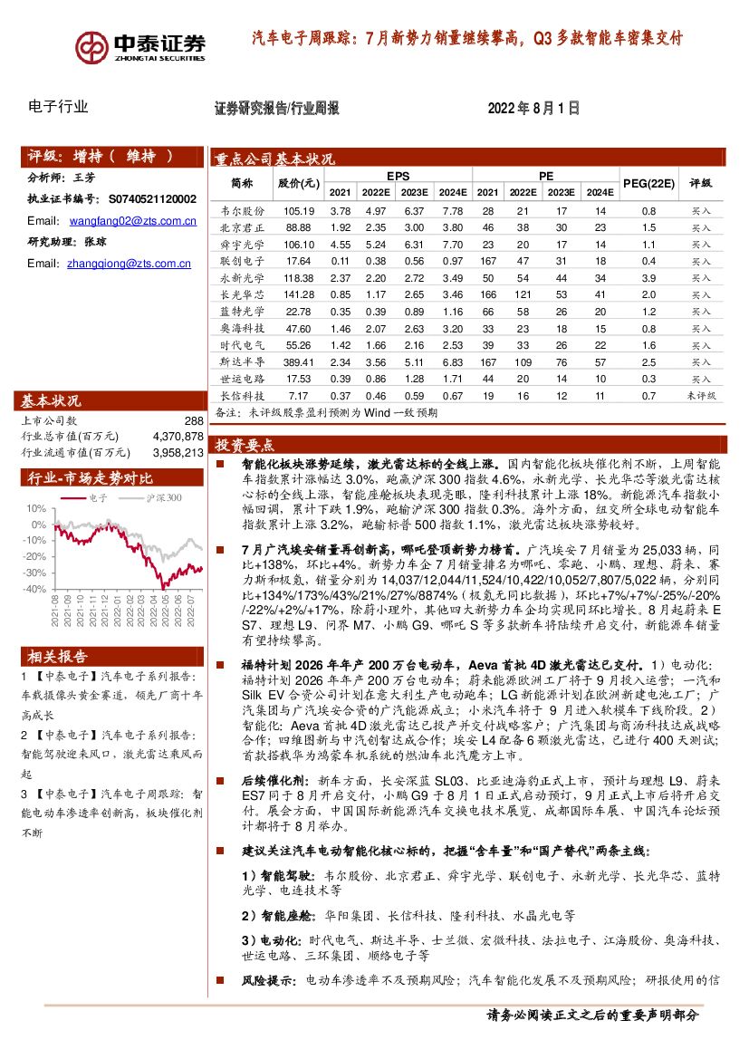 中泰证券:汽车电子周跟踪:7月新势力销量继续攀高,Q3多款智能车密集交付.pdf
