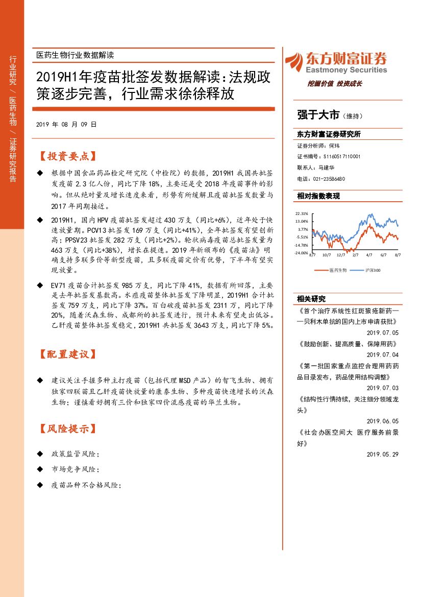 东方财富证券:医药生物行业数据解读:2019H1年疫苗批签发数据解读:法规政策逐步完善,行业需求徐徐释放.pdf