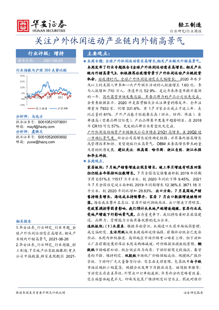 华安证券:轻工制造行业周报:关注户外休闲运动产业链内外销高景气.pdf