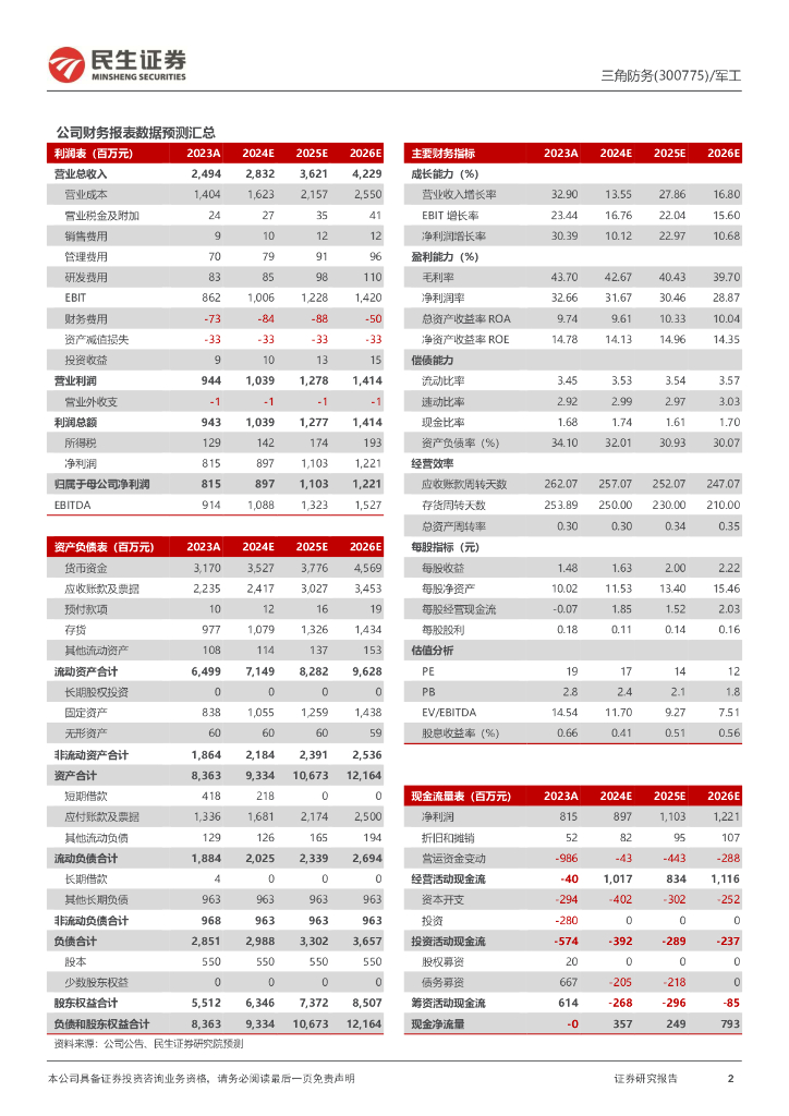 民生证券:三角防务(300775)-2024年中报点评:2Q24业绩短期承压;布局超大型模锻增强竞争力.pdf