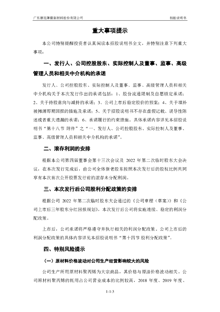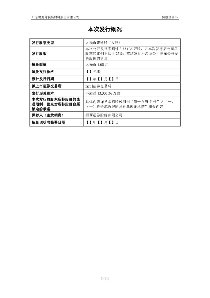 广东德冠薄膜新材料股份有限公司深市主板IPO上市招股说明书:投资10亿元建设功能薄膜生产线.pdf