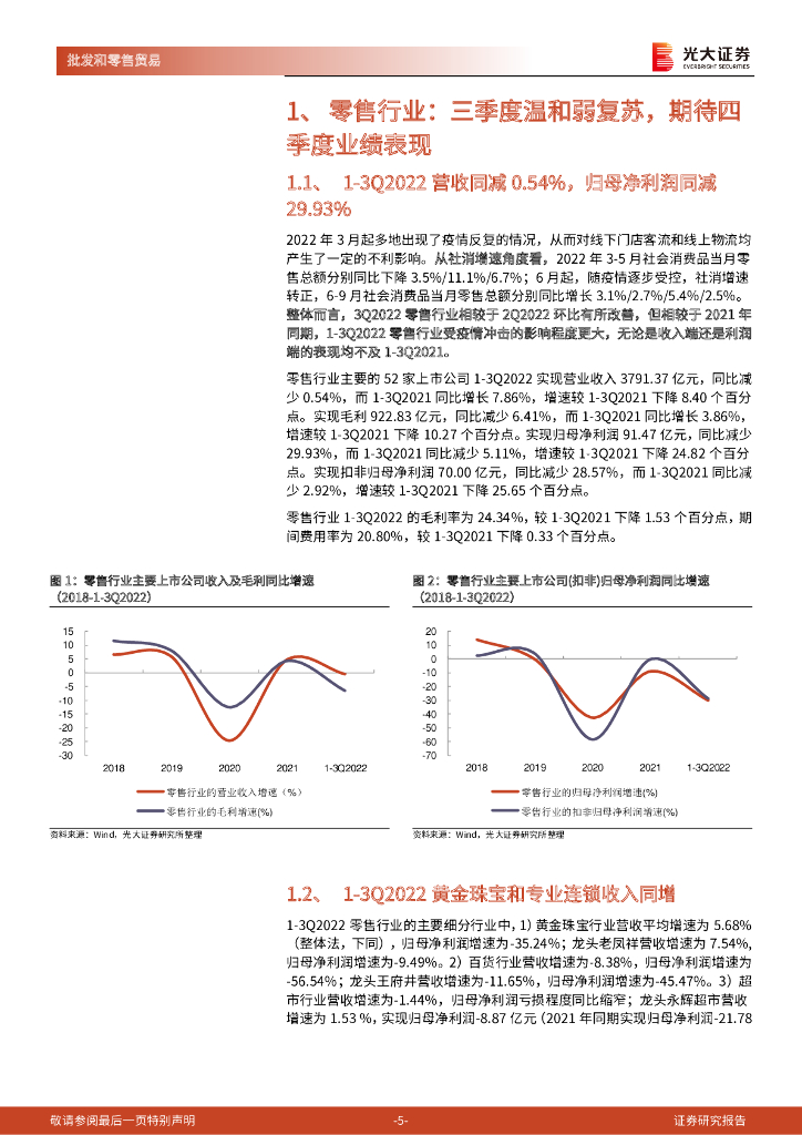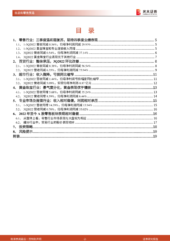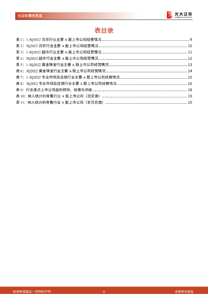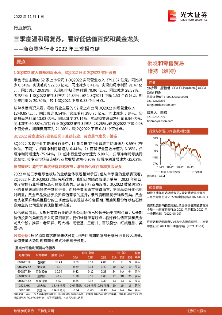 光大证券:商贸零售行业2022年三季报总结:三季度温和弱复苏,看好低估值百货和黄金龙头.pdf