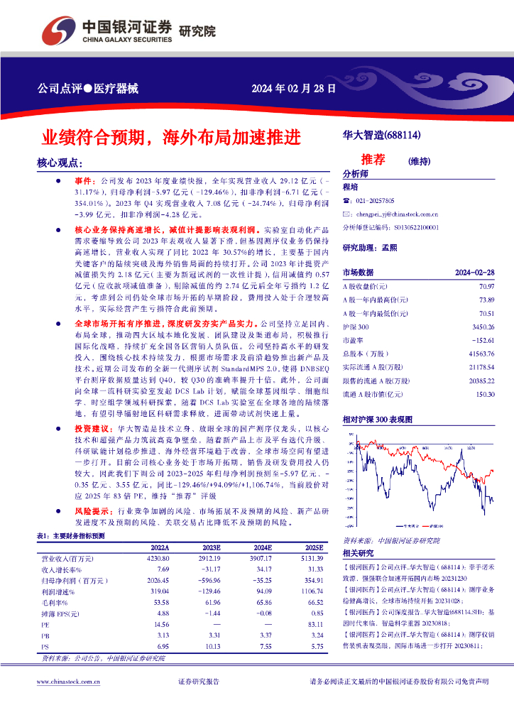 中国银河:华大智造(688114)-业绩符合预期,海外布局加速推进.pdf