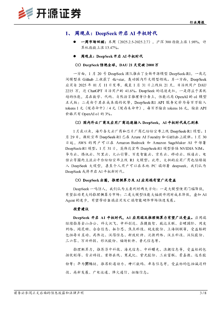 开源证券:计算机行业周报:周观点:DeepSeek开启AI平权时代.pdf