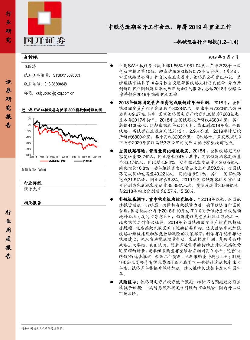 国开证券:机械设备行业周报:中铁总近期召开工作会议,部署2019年重点工作.pdf