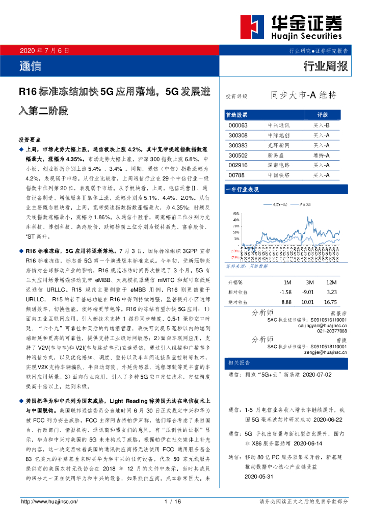 华金证券:通信行业周报:R16标准冻结加快5G应用落地,5G发展进入第二阶段.pdf