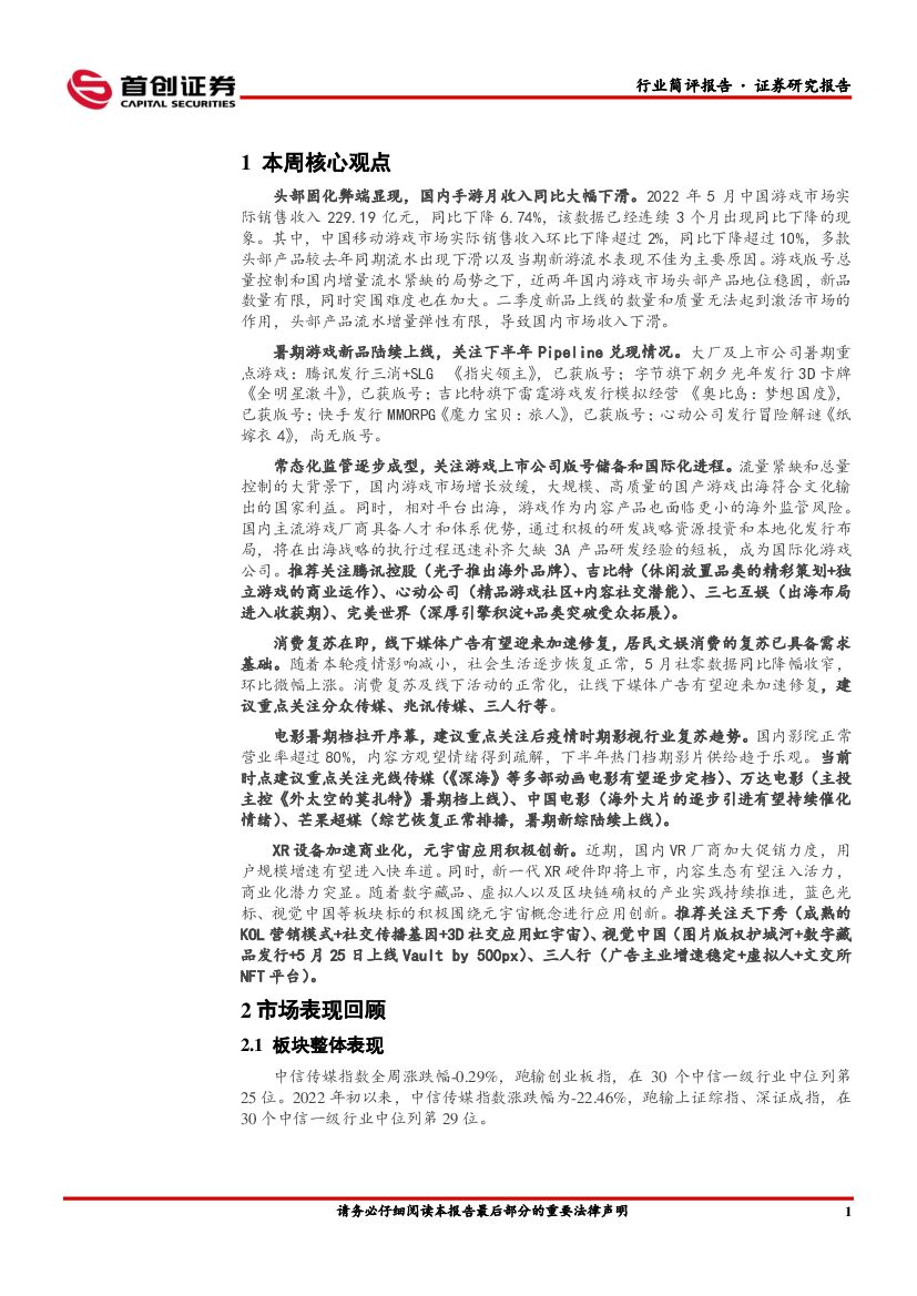 首创证券:互联网传媒行业简评报告:国内游戏收入连月负增长,关注暑期新品发布.pdf