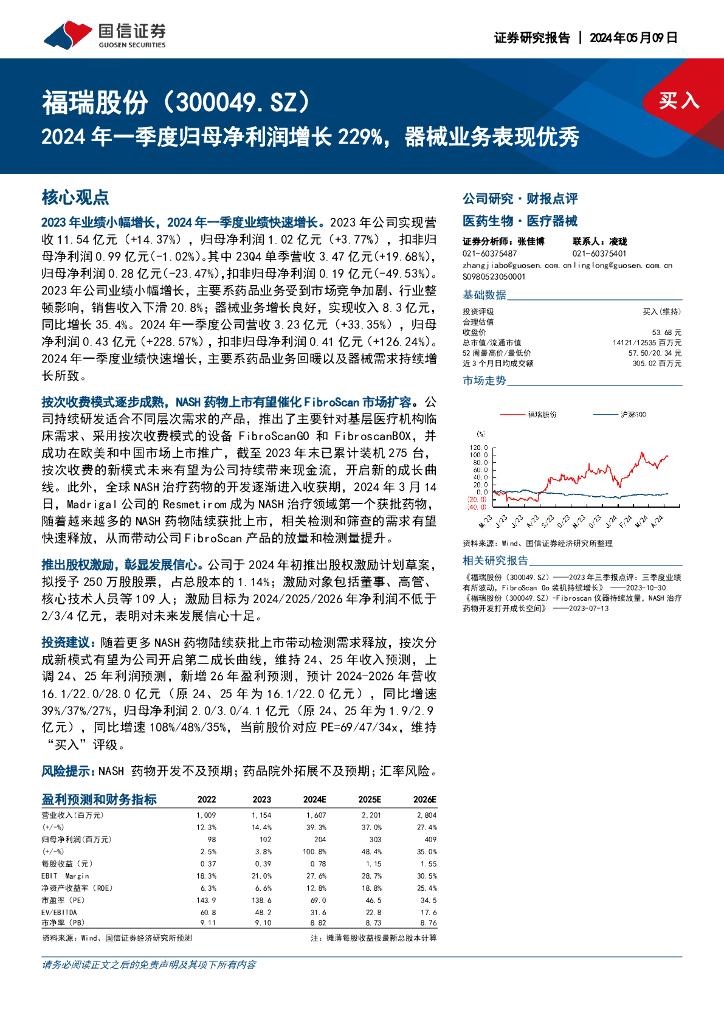 国信证券:福瑞股份(300049)-2024年一季度归母净利润增长229%,器械业务表现优秀.pdf