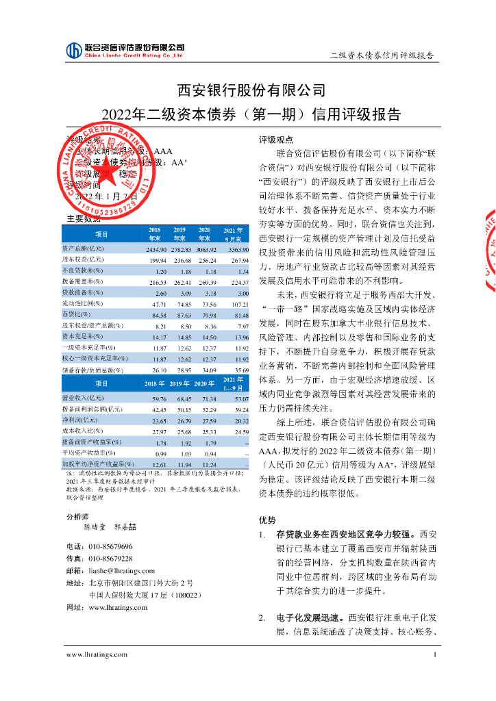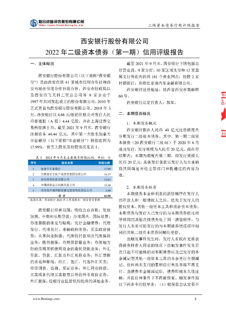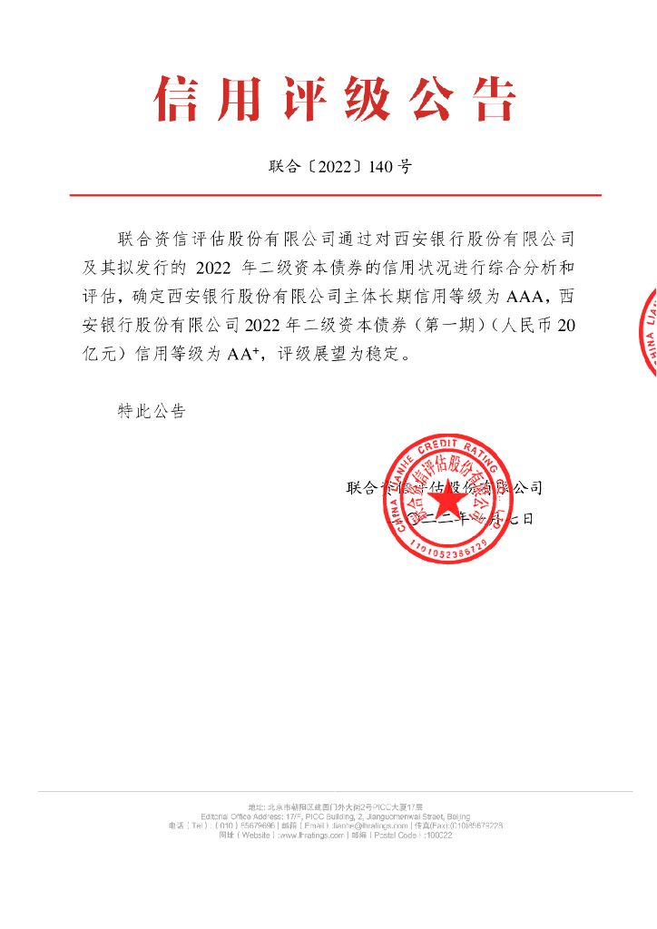 联合资信:西安银行股份有限公司2022年二级资本债券(第一期)信用评级报告及跟踪评级安排说明.pdf
