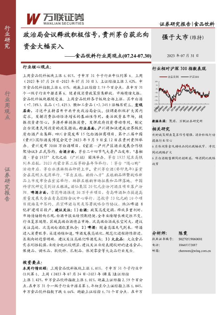 万联证券:食品饮料行业周观点:政治局会议释放积极信号,贵州茅台获北向资金大幅买入.pdf