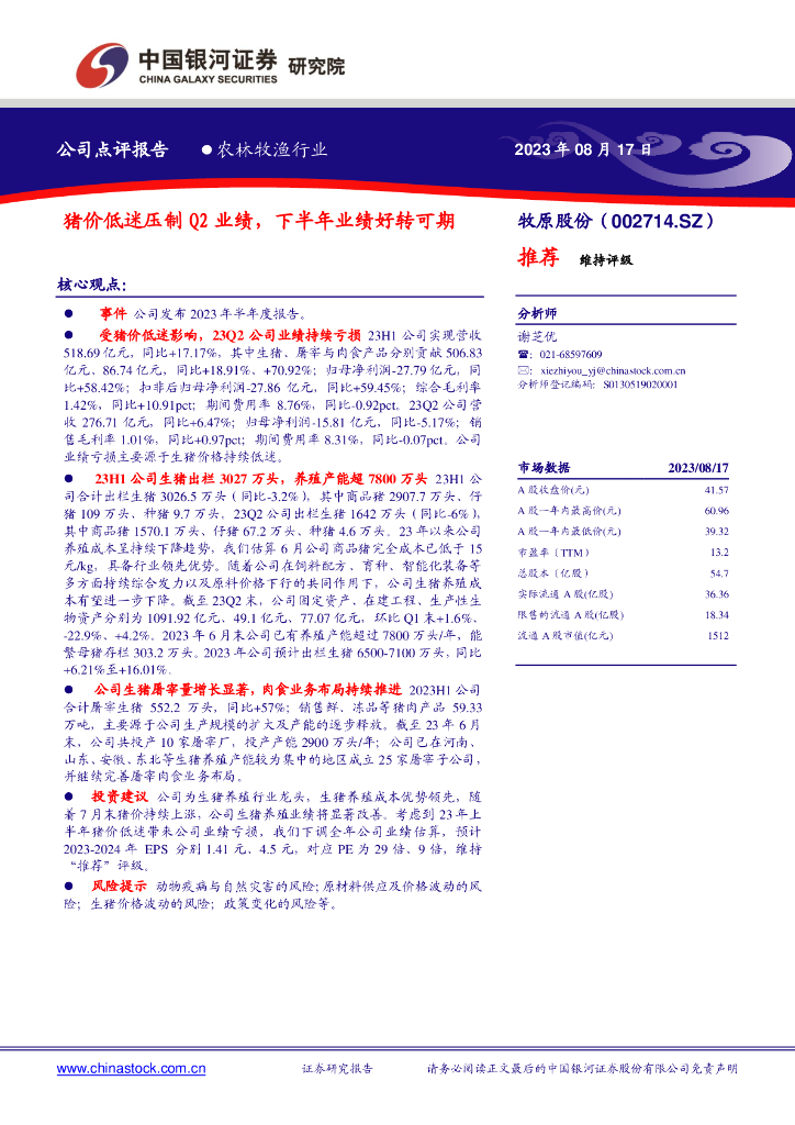 中国银河:牧原股份(002714)-猪价低迷压制Q2业绩,下半年业绩好转可期.pdf