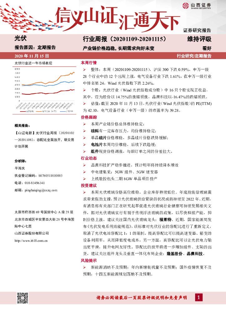 山西证券:光伏行业周报:产业链价格趋稳,长期需求向好未变.pdf