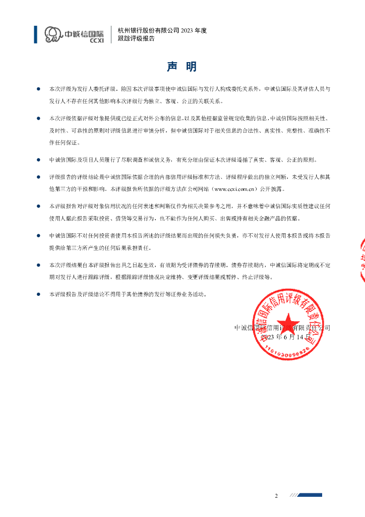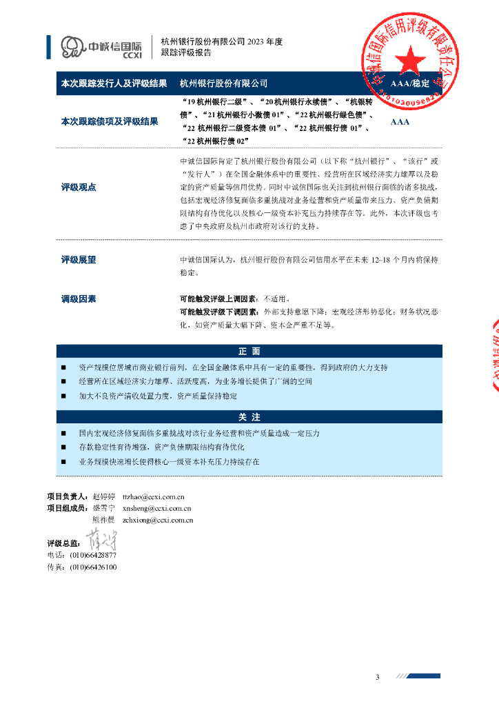 中诚信:杭州银行股份有限公司2023年度跟踪评级报告.pdf