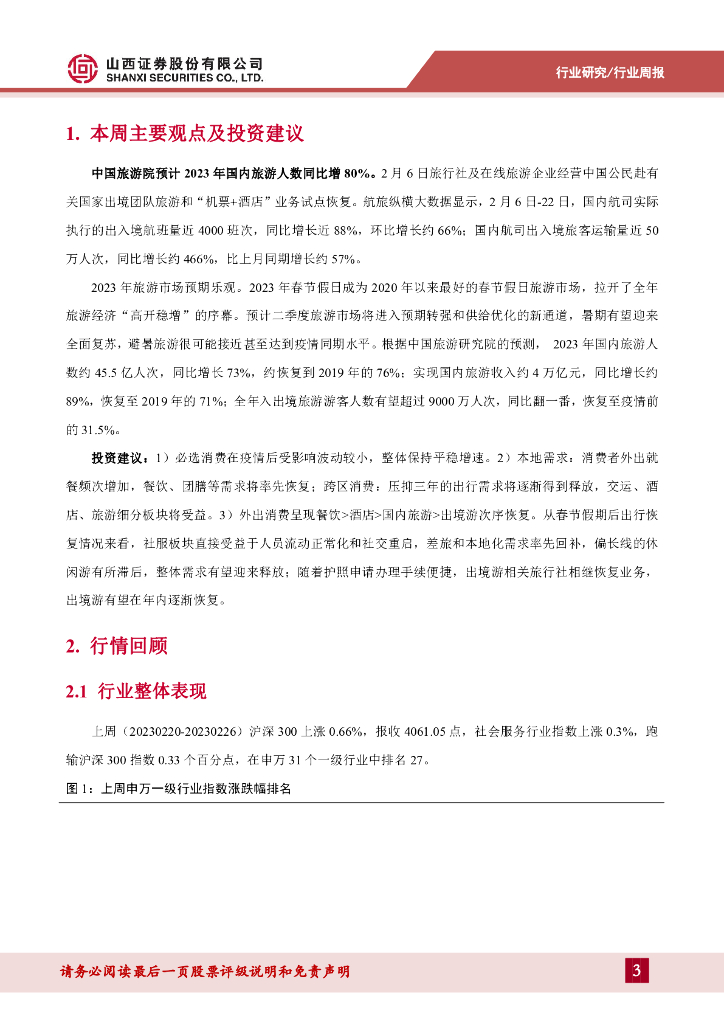 山西证券:消费者服务行业周报:中国旅游院预计2023年国内旅游人数同比增80%.pdf