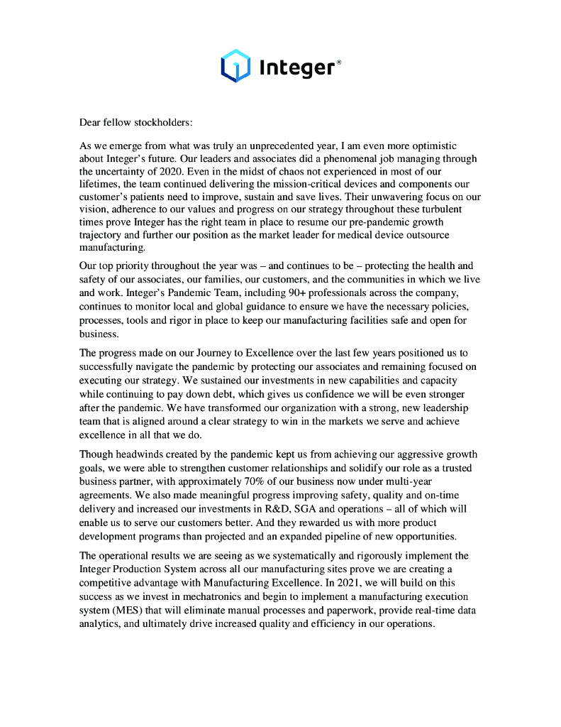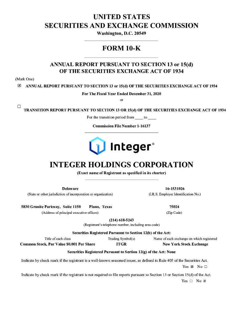 Integer Holdings Corporation(ITGR)2020财年年度报告(英文版).pdf