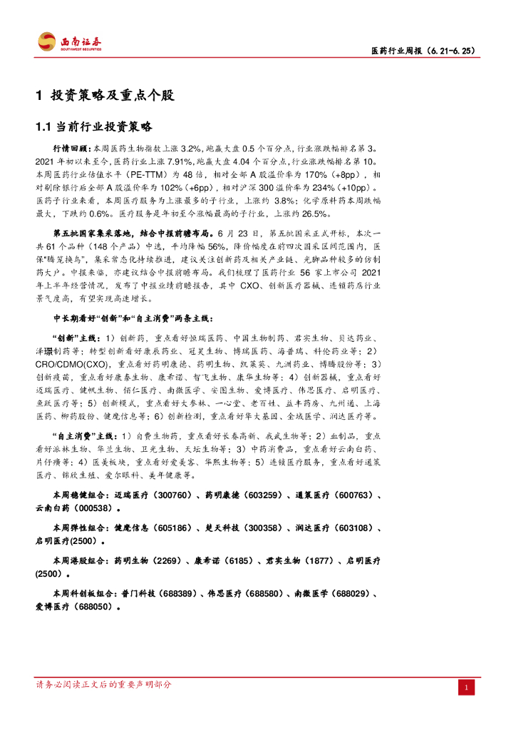 西南证券:医药行业周报:第五批国家集采落地,结合中报前瞻布局.pdf