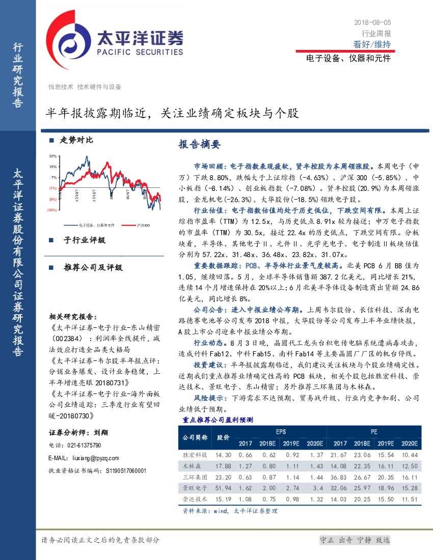 太平洋证券:电子设备、仪器和元件行业周报:半年报披露期临近,关注业绩确定板块与个股.pdf