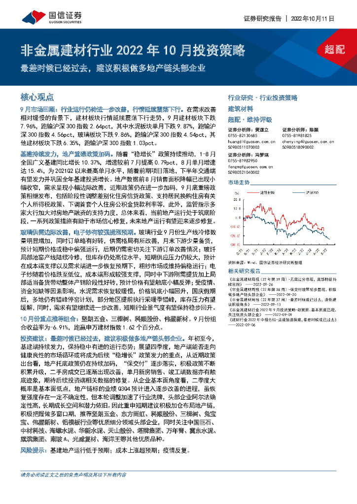 国信证券:非金属建材行业2022年10月投资策略:最差时候已经过去,建议积极做多地产链头部企业.pdf