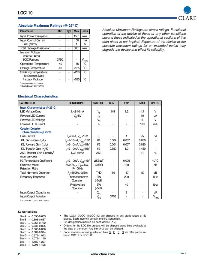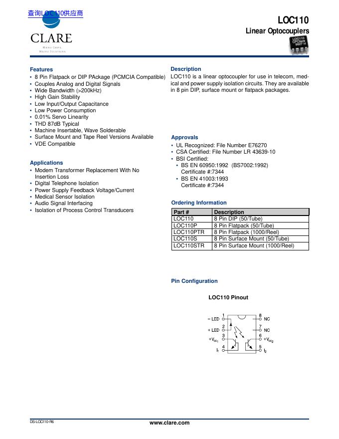 CLARE LOC110 Linear Optocouplers 数据手册.pdf