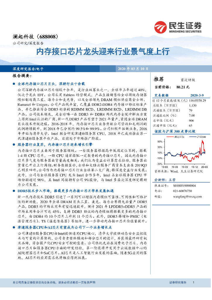 民生证券:澜起科技(688008)-内存接口芯片龙头迎来行业景气度上行.pdf