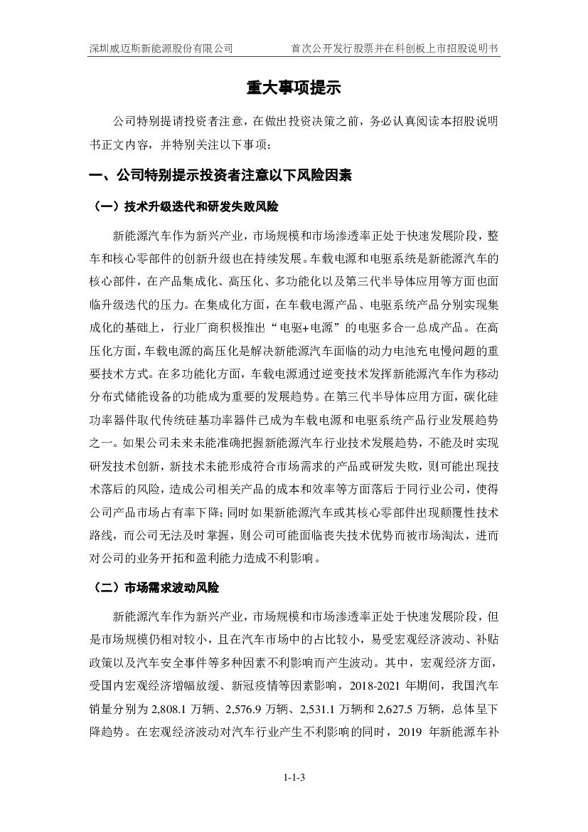威迈斯科创板IPO上市招股说明书:专注于新能源汽车领域.pdf