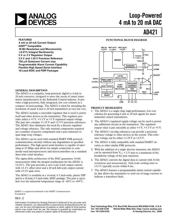ANALOG DEVICES AD421 英文产品数据手册 Rev C.pdf