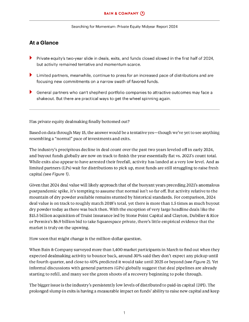 贝恩公司:2024年全球私募股权市场年中报告(英文版).pdf