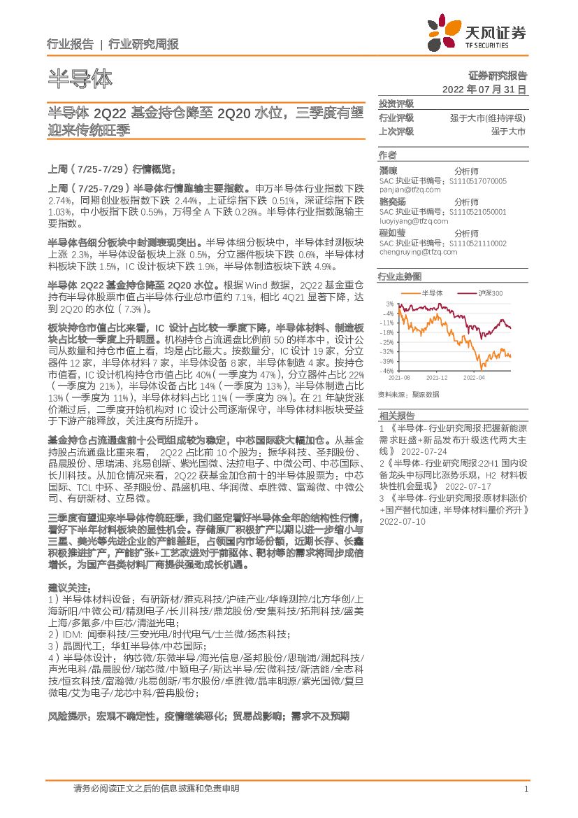天风证券:半导体行业研究周报:半导体2Q22基金持仓降至2Q20水位,三季度有望迎来传统旺季.pdf