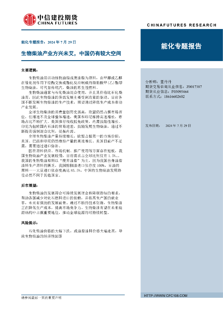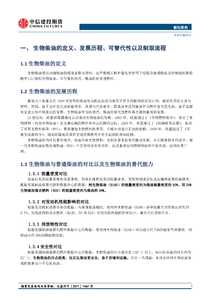 中信建投期货:能化专题报告:生物柴油产业方兴未艾,中国仍有较大空间.pdf