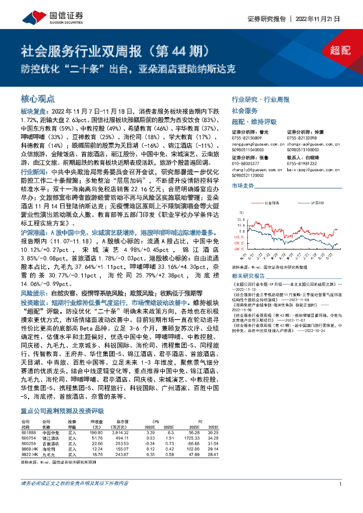 国信证券:社会服务行业双周报(第44期):防控优化“二十条”出台,亚朵酒店登陆纳斯达克.pdf