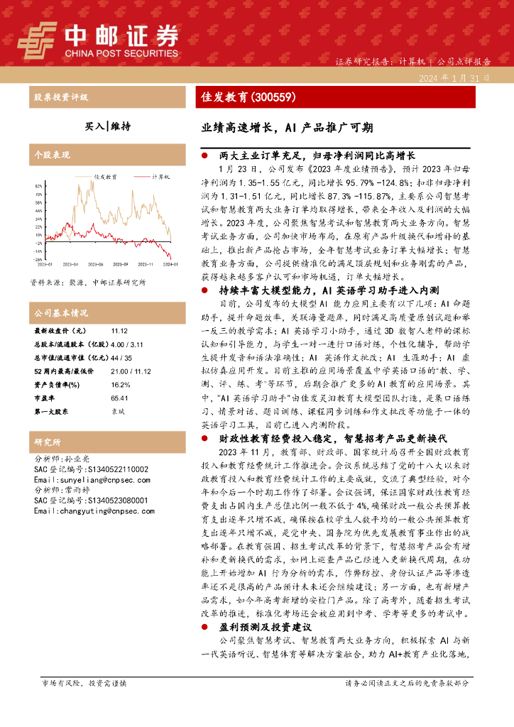 中邮证券:佳发教育(300559)-业绩高速增长,AI产品推广可期.pdf