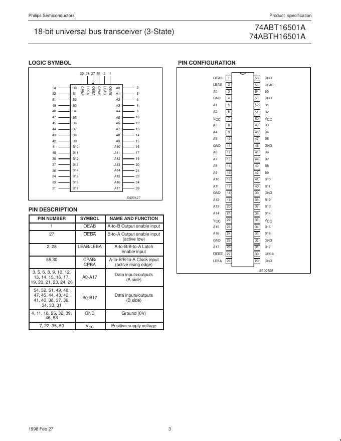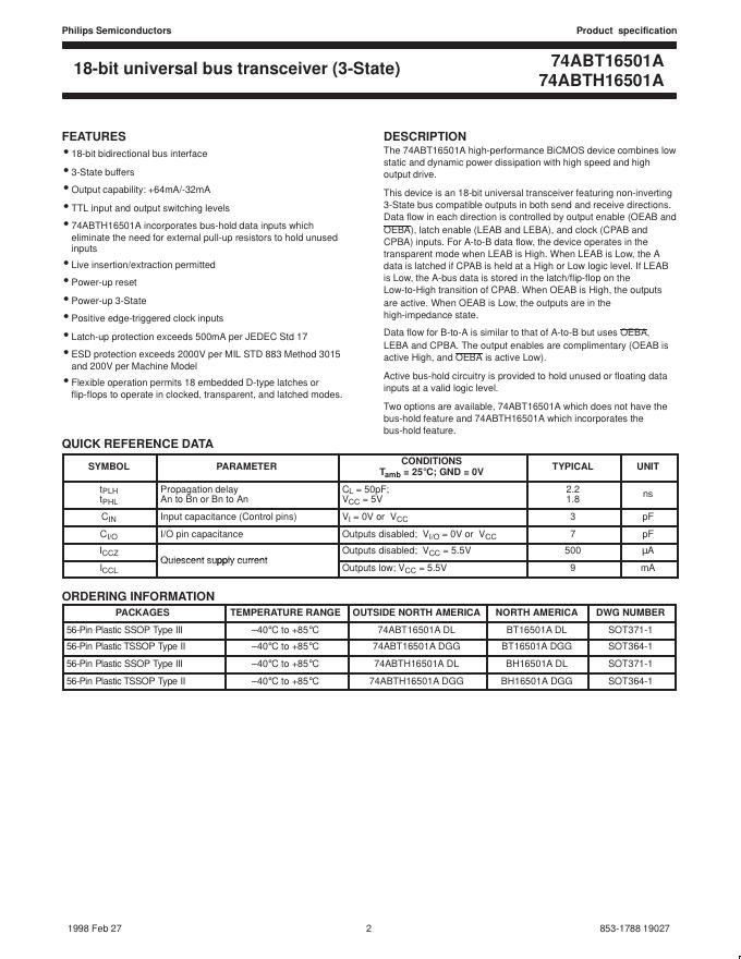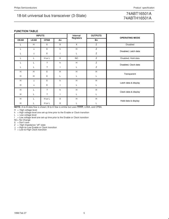 飞利浦 74ABT16501A, 74ABTH16501A 数据手册.pdf
