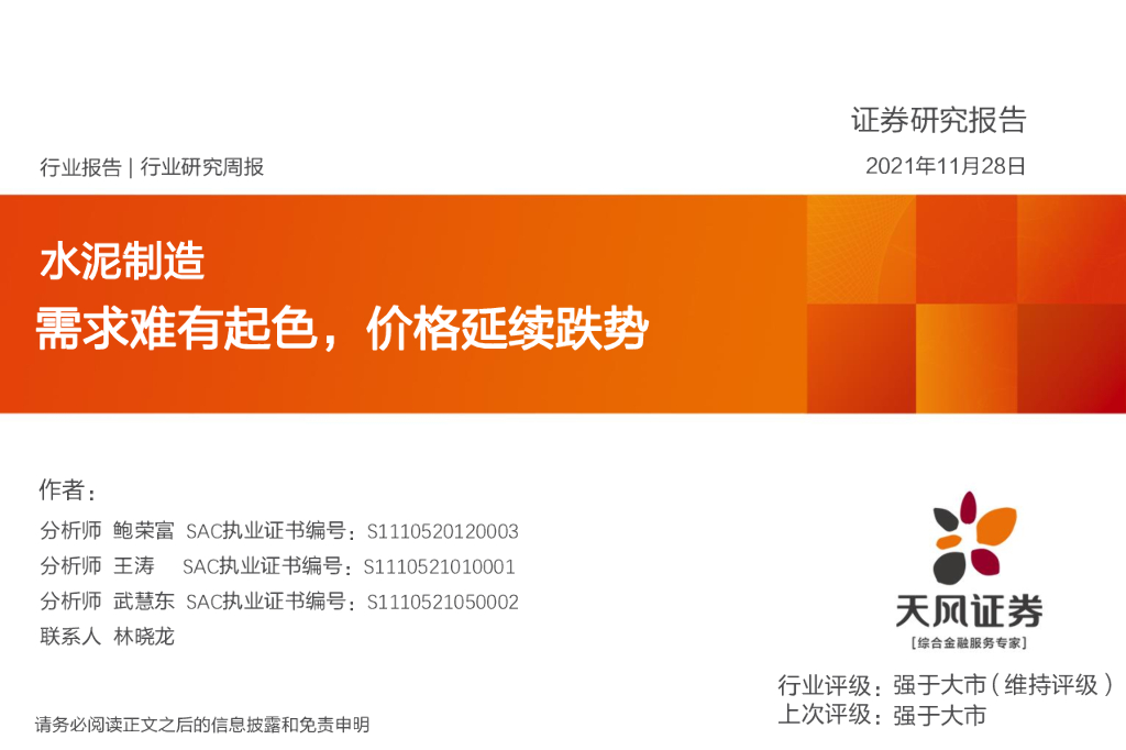 天风证券:水泥制造行业研究周报:需求难有起色,价格延续跌势.pdf