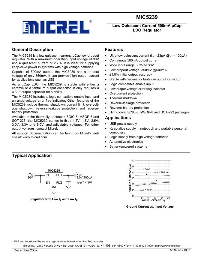 NATIONAL SEMICONDUCTOR LP2954/LP2954A 5V and Adjustable Micropower Low-Dropout Voltage Regulators 说明书