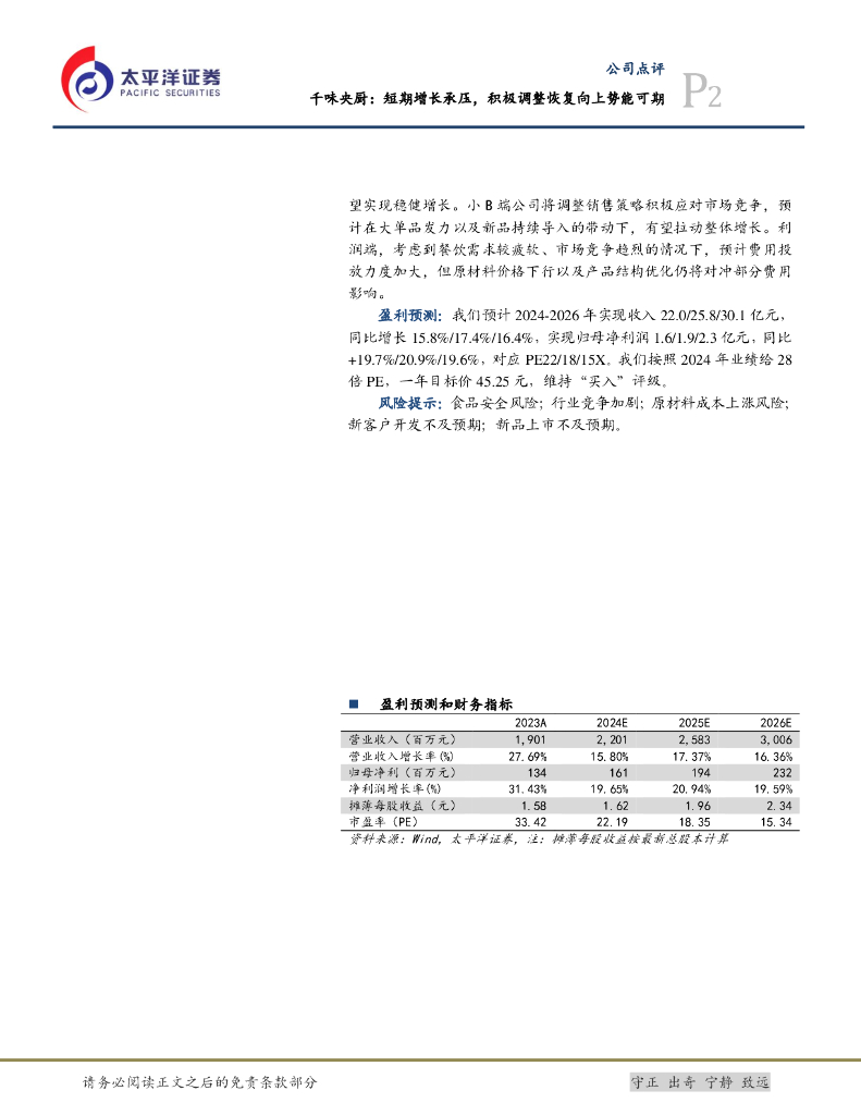 太平洋证券:千味央厨:短期增长承压,积极调整恢复向上势能可期.pdf