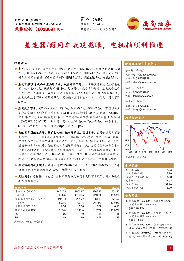 西南证券:豪能股份(603809)-差速器/商用车表现亮眼,电机轴顺利推进.pdf