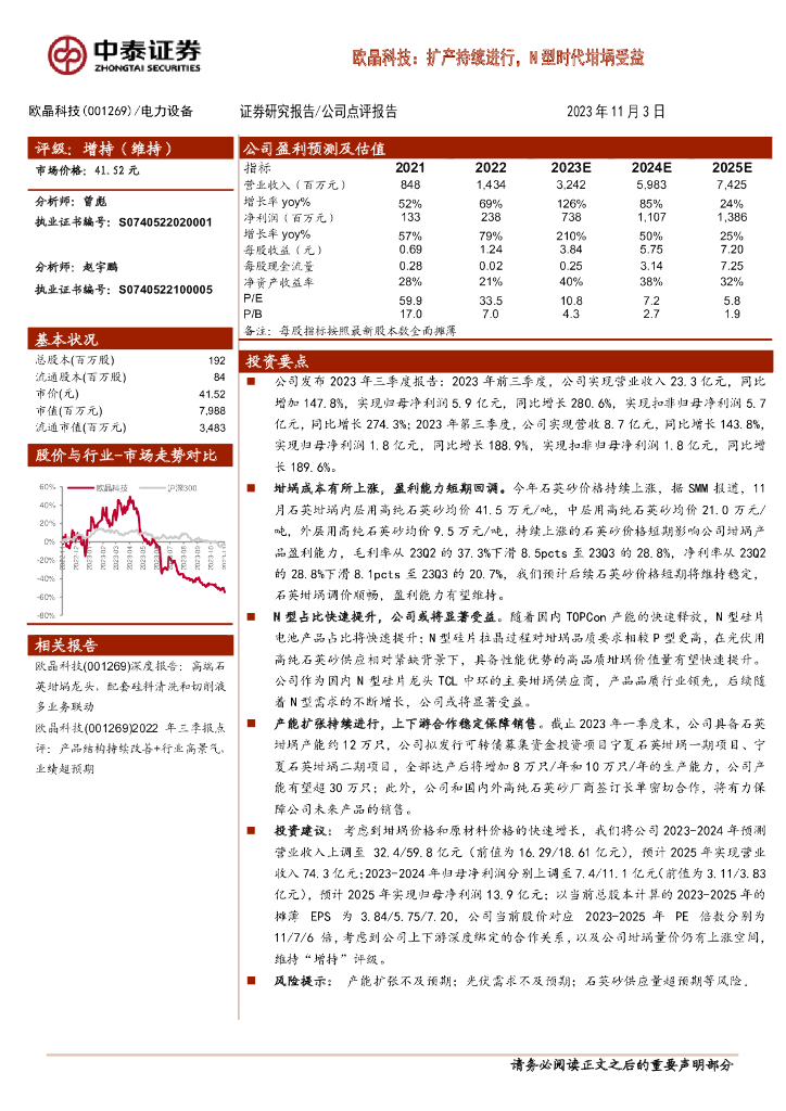 中泰证券:欧晶科技(001269)-扩产持续进行,N型时代坩埚受益.pdf