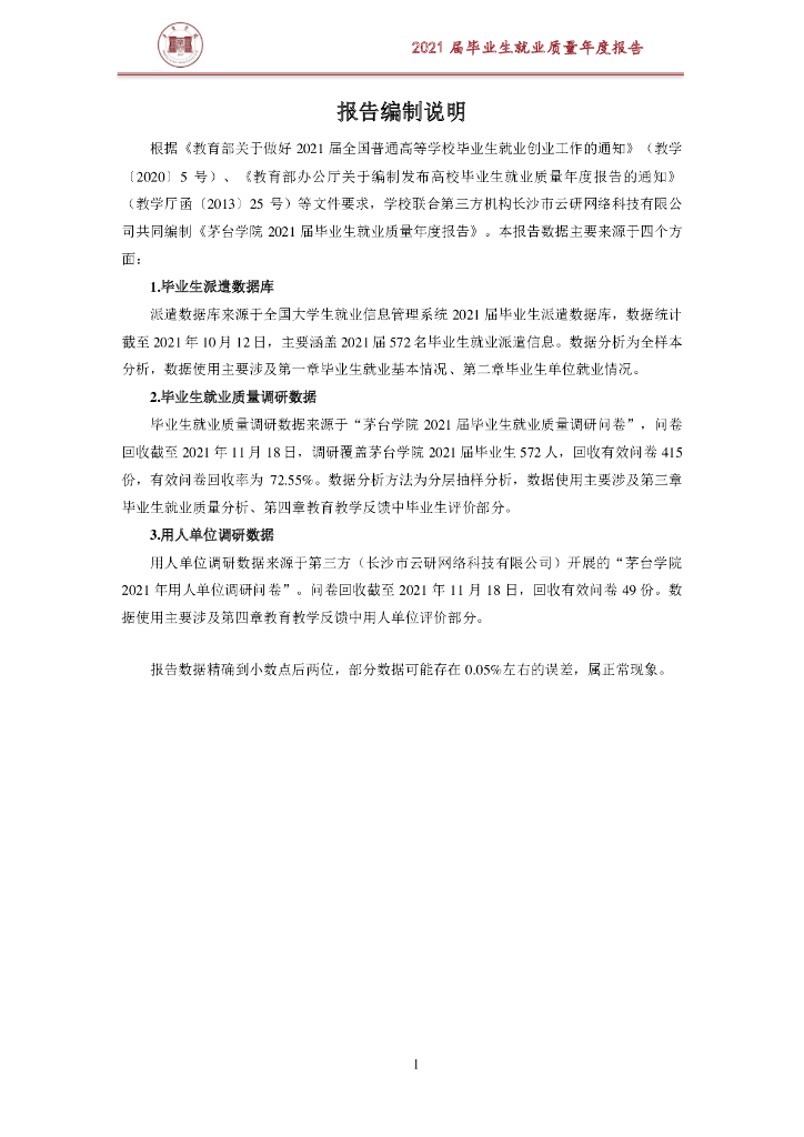 茅台学院2021届毕业生就业质量报告.pdf
