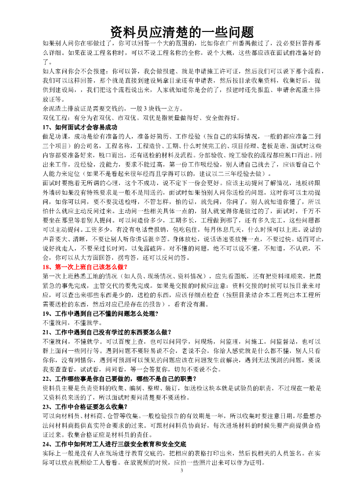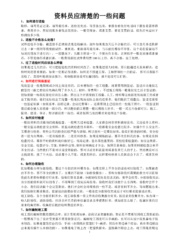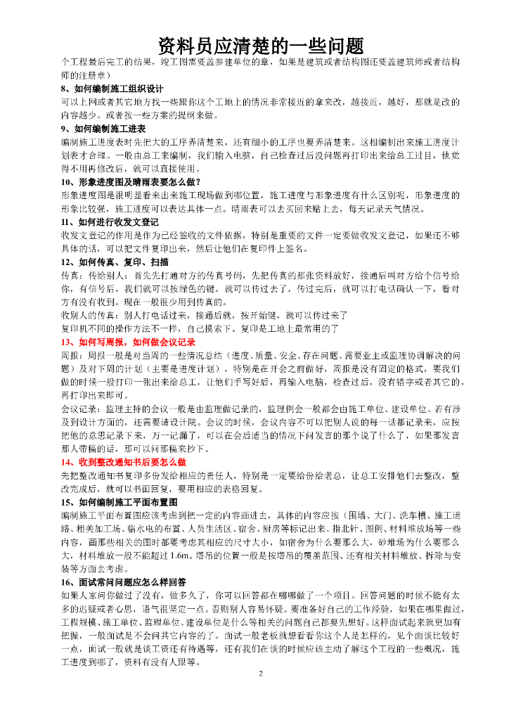 施工单位资料员应清楚的一些问题(附答案).doc