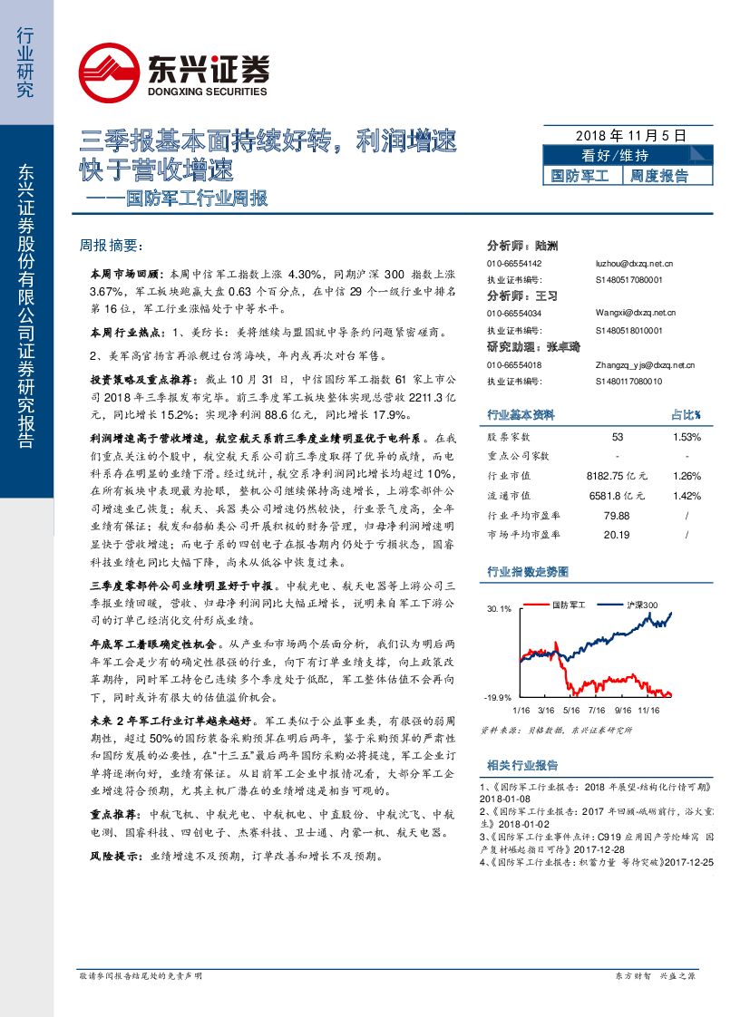东兴证券:国防军工行业周报:三季报基本面持续好转,利润增速快于营收增速.pdf