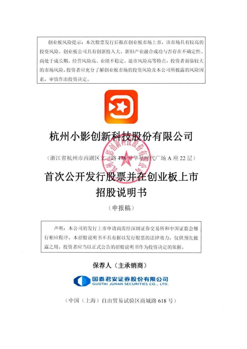 杭州小影创新科技IPO上市招股说明书:视频剪辑软件VivaVideo冲刺IPO.pdf