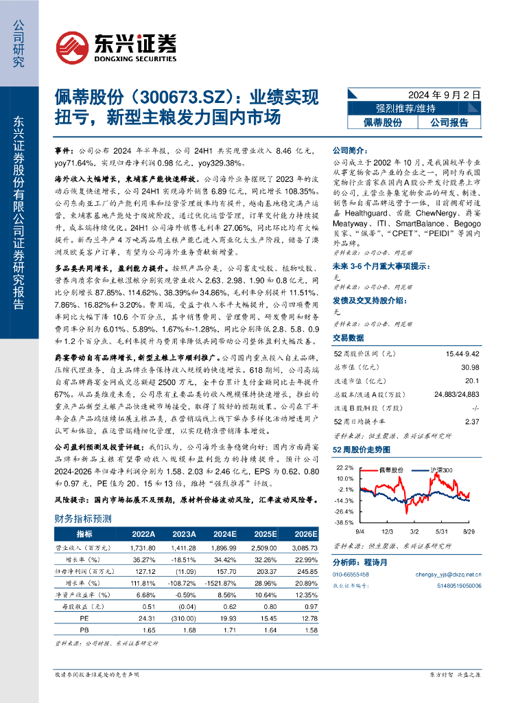 东兴证券:佩蒂股份(300673)-业绩实现扭亏,新型主粮发力国内市场.pdf