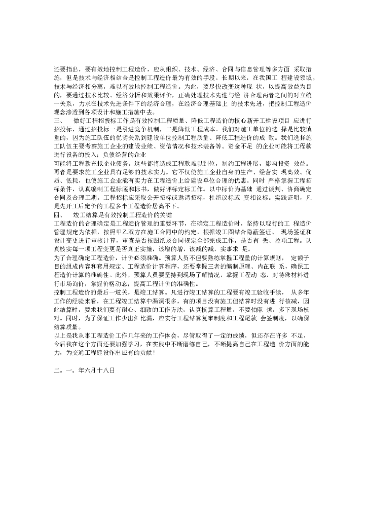建筑工程造价工作总结.doc