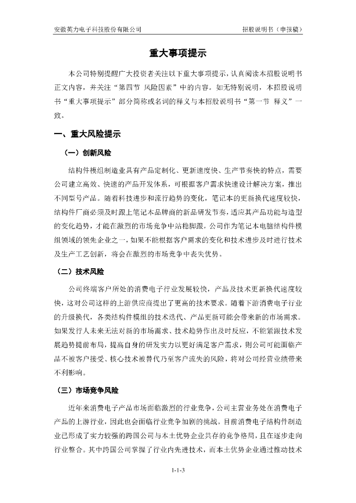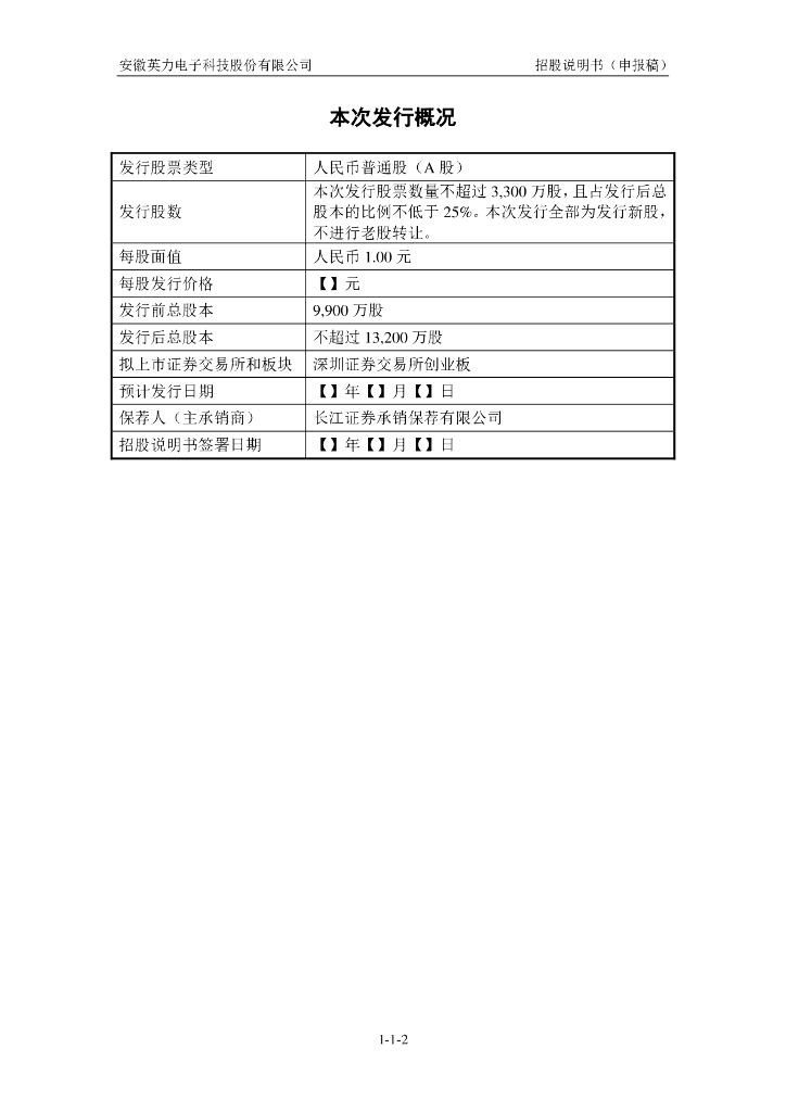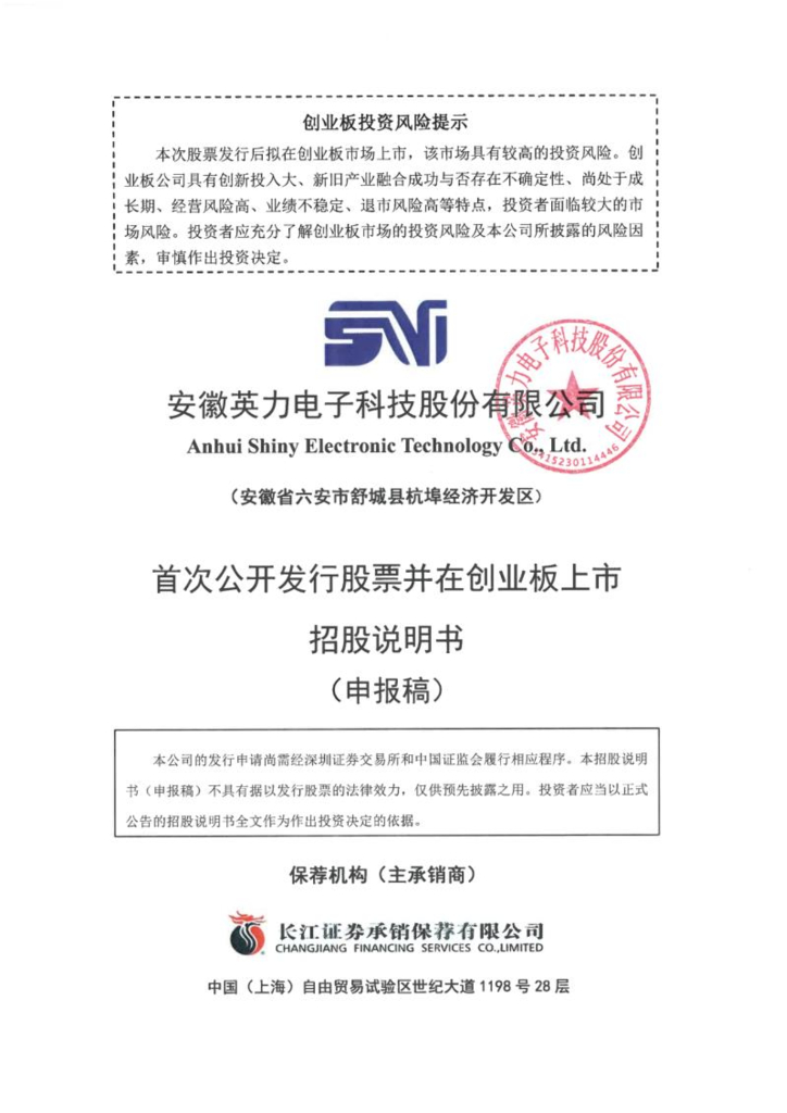 安徽英力电子科技股份有限公司深交所创业板IPO上市招股说明书.pdf